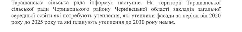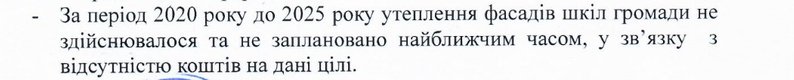 Водночас у відповіді на запит не надали переліку шкіл, які функціонують у громаді та скільки з них потребують утеплення.