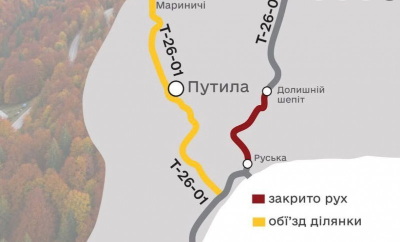 Відповідно до п.7 «Порядку тимчасового обмеження або заборони руху транспортних засобів…» з 1 листопада 2025 року до 30 квітня 2026 року Служба відновлення у Чернівецькій області вводить заборону руху транспортних засобів дорогою Т-26-09/Р-62/ – Долішній Шепіт – КПП «Руська» на перевальній ділянці.