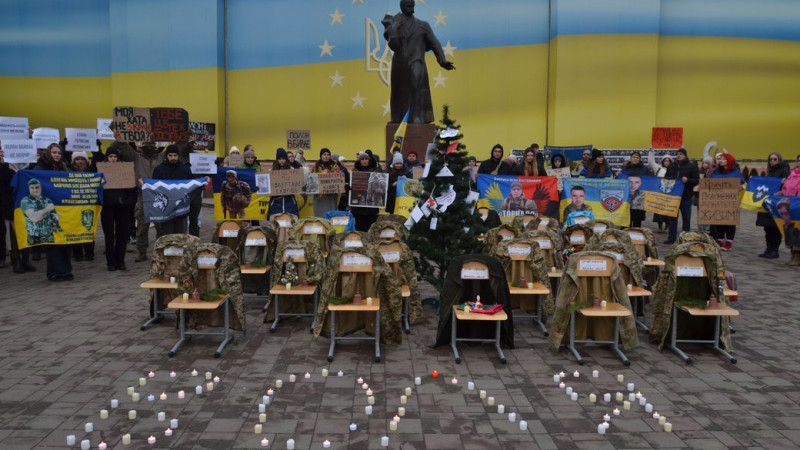Одна із численних акцій на підтримку військовополонених на Центральній площі Чернівців. Фото Суспільне