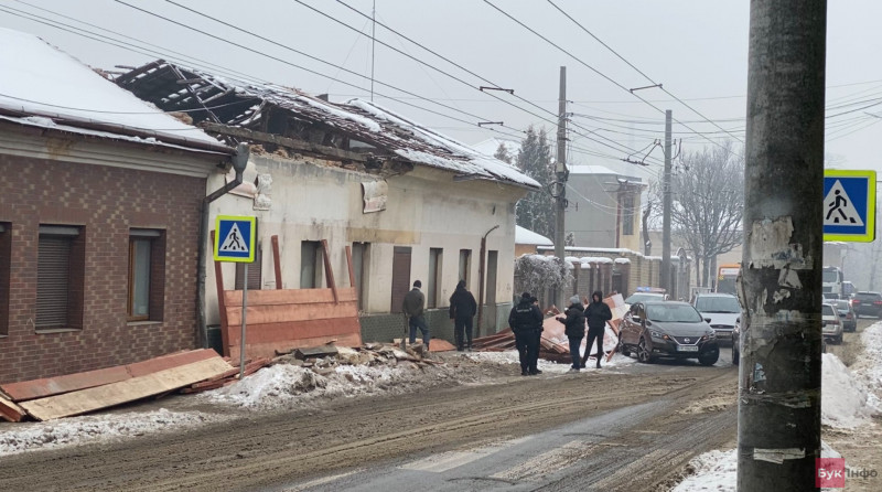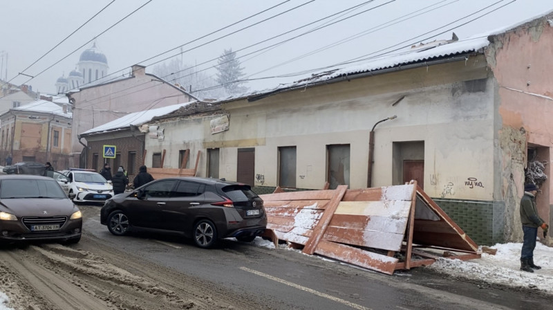 У Чернівцях дерев’яна конструкція впала на машину біля аварійної будівлі на вулиці Руській, 47.