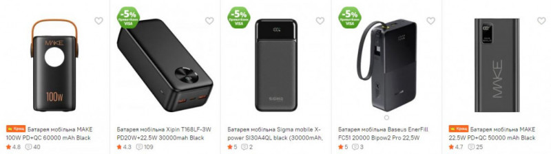 - місткість акумулятора – для смартфона підійде 10 000–20 000 мА-год, для ноутбука – від 30 000 мА-год;