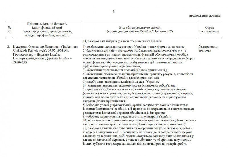 Відповідно до підписаних указів, обидва фігуранти є громадянами Ізраїлю. До них застосовано повний пакет санкцій, передбачених законом України «Про санкції».