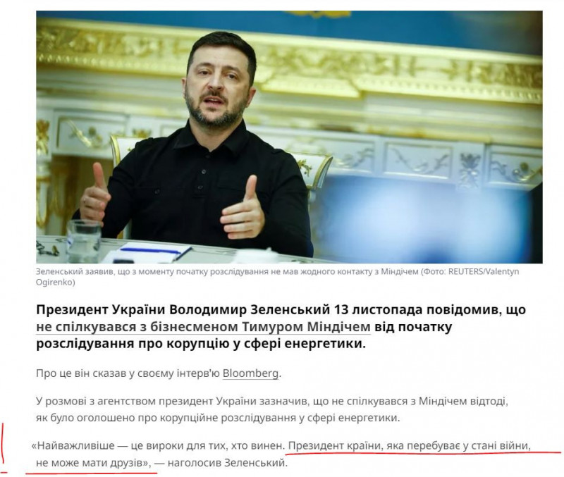 4. Тимур Міндіч перетнув кордон у напрямку Польщі о 2:09 ночі 10 листопада – за 4 години до обшуків у його квартирах в будинку на вулиці Грушевського в Києві. Держприкордонслужба заявила, що Тимур Міндіч перетнув кордон законно. «Усі документи, які дають право на перетин кордону під час дії воєнного стану, були в наявності».